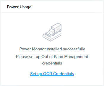 The application is deployed, so now you need to setup the Out of Band (OOB) credentials to get the information you need. Switch to Infrastructure and check the Power Usage widget. Click on Set up OOB Credentials and you will be redirected to the settings page where we can add the credentials per cluster (or per node if you have different credentials per node).