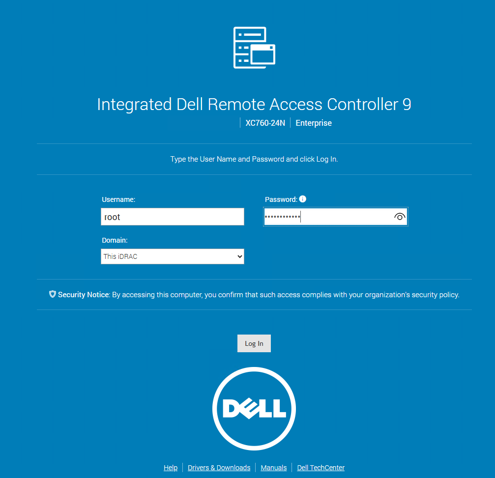 Logon to the iDRAC page for a node using an account with administrative privileges.